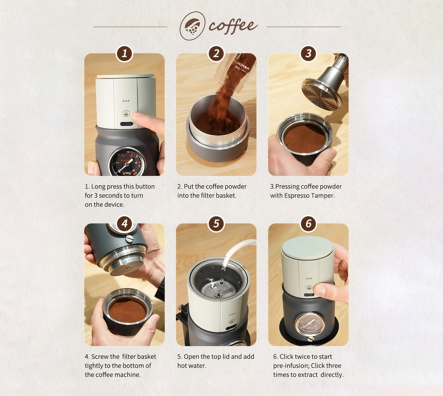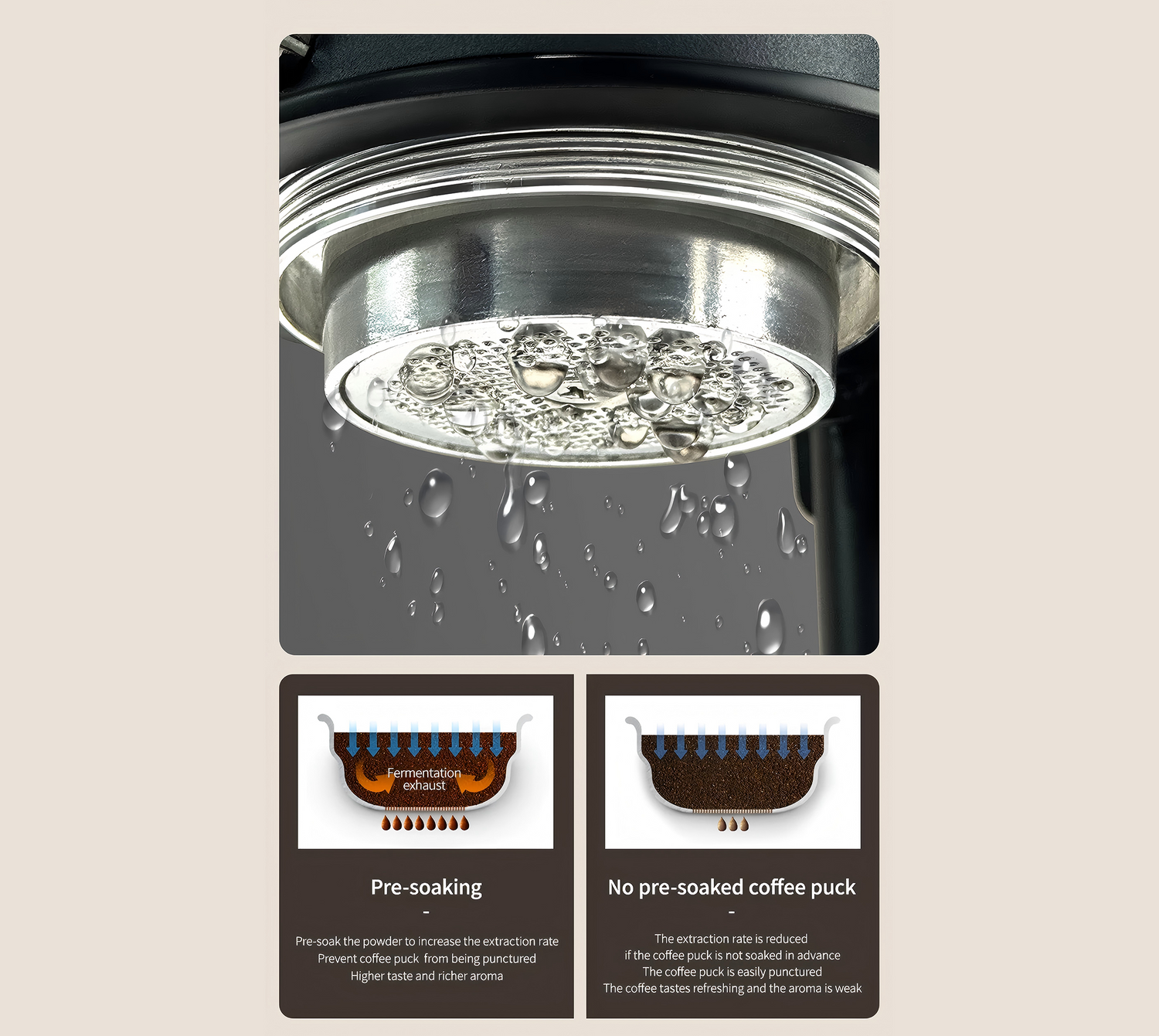 - Click twice to start pre-infusion; Click threetimes to extract directly